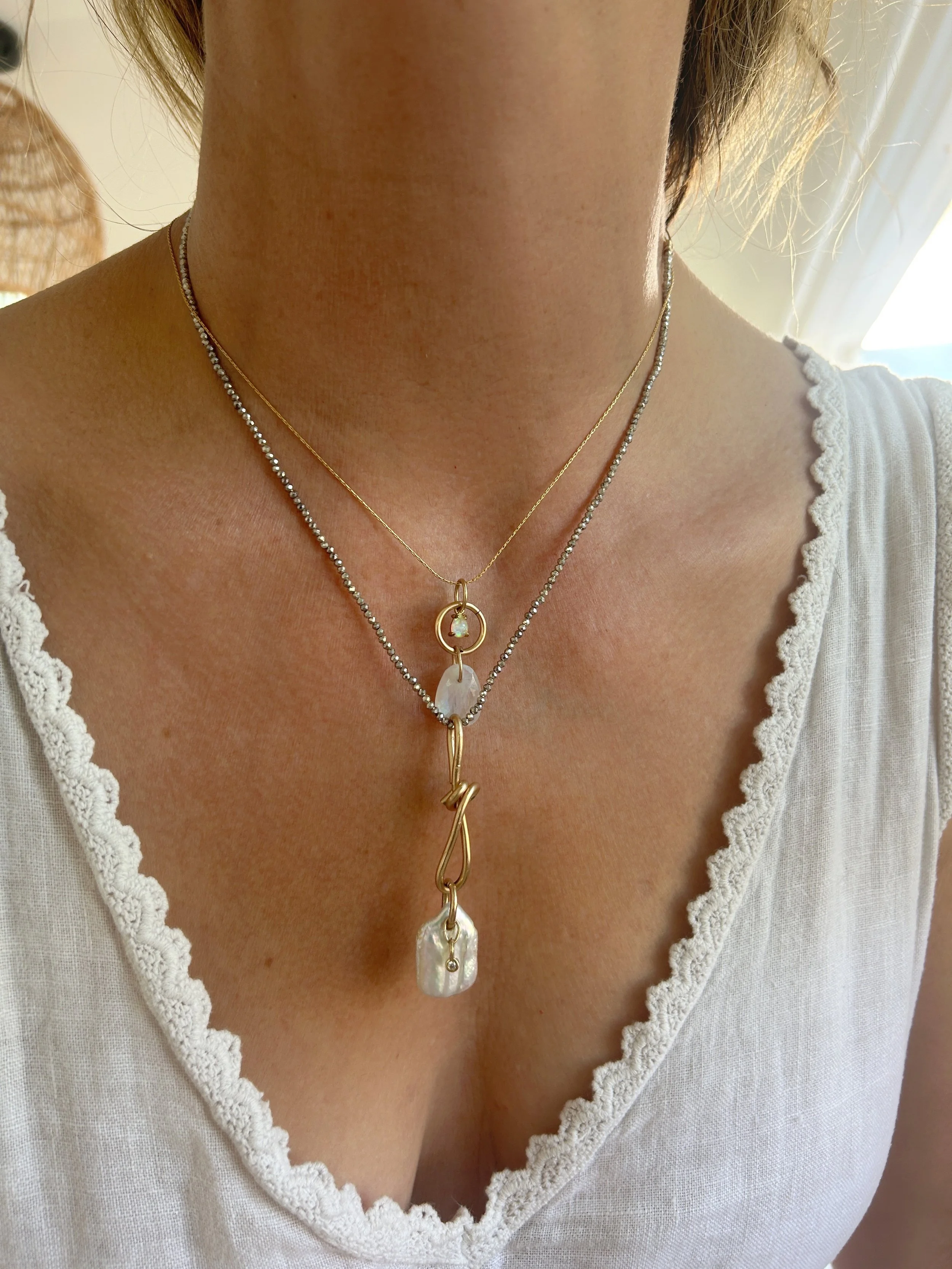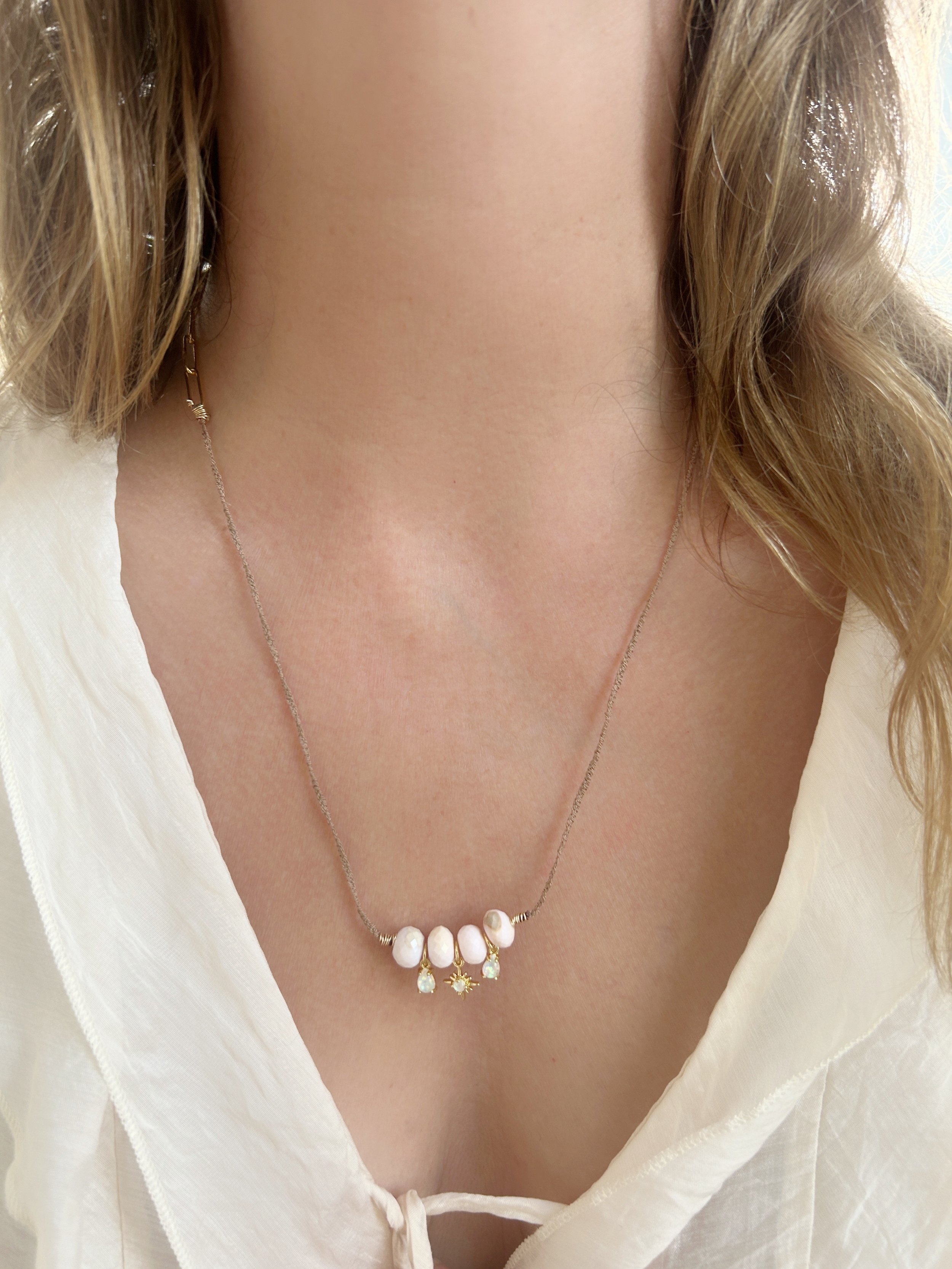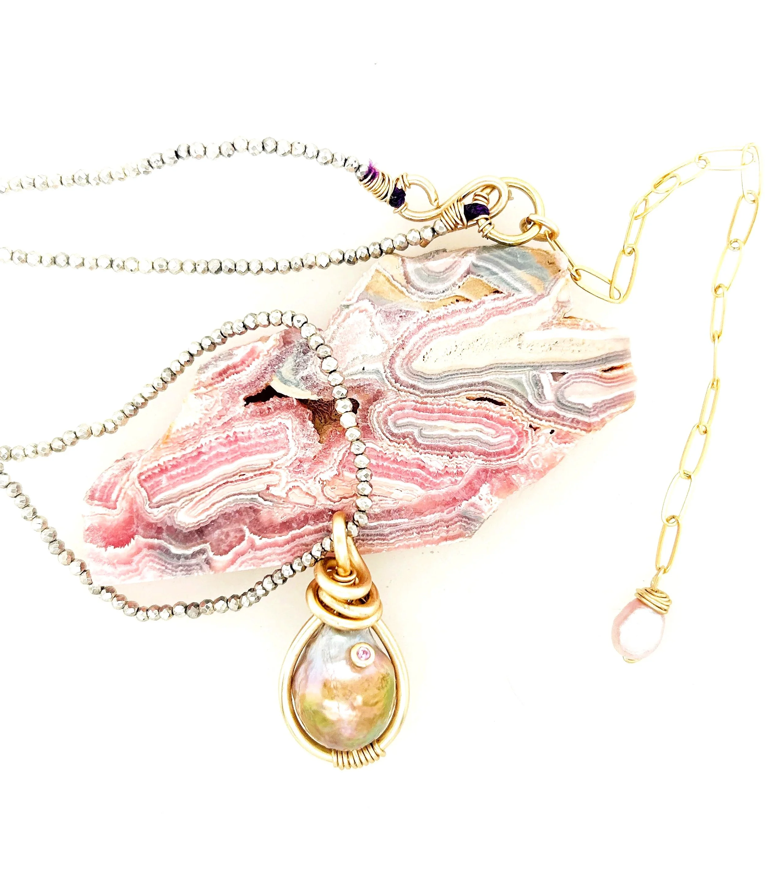 Stones and Story: The energetics of this magical one-of-a-kind pearl and Pink Topaz piece is about stepping into your truth, your heart’s truth, where your power lies.