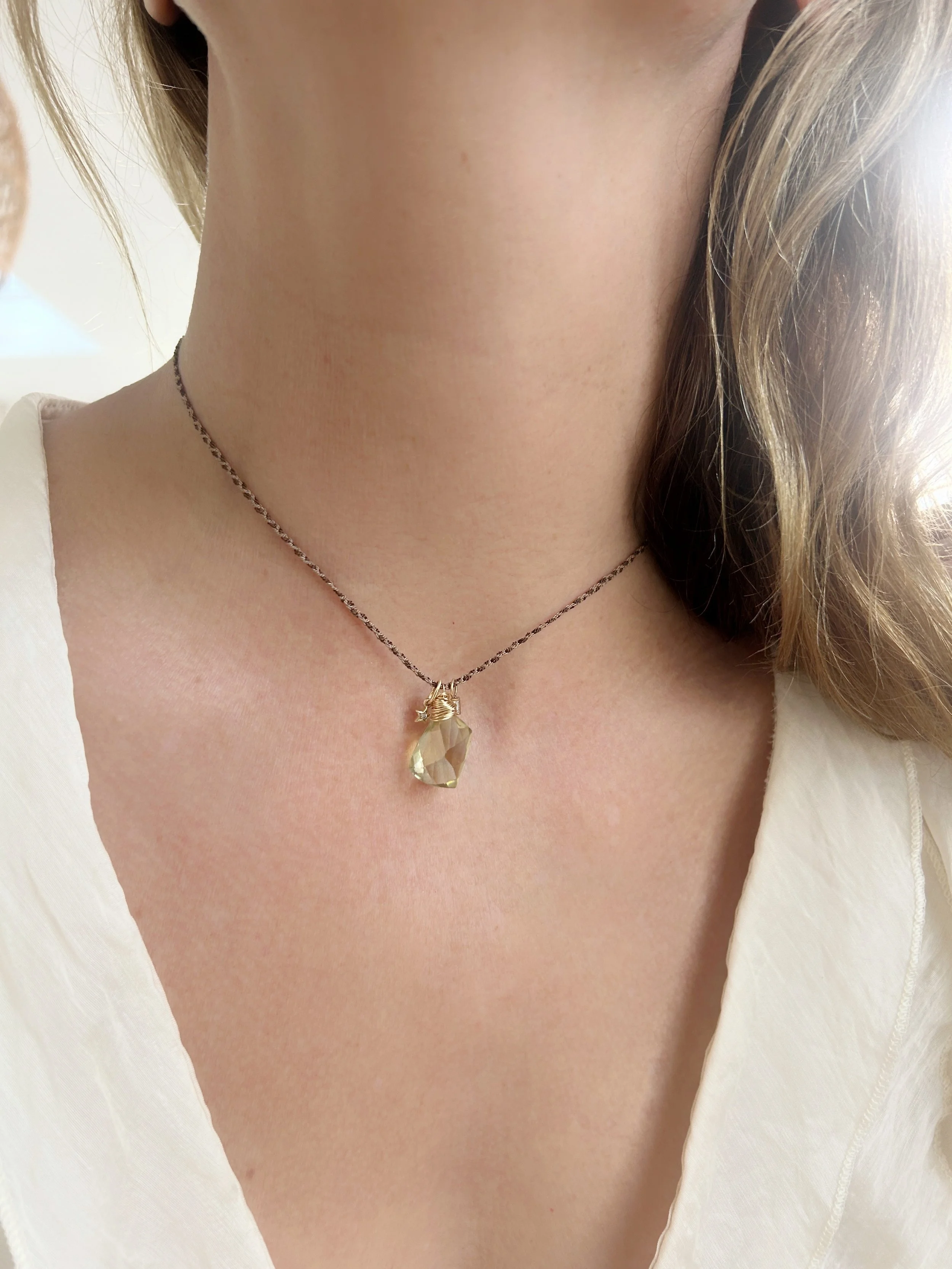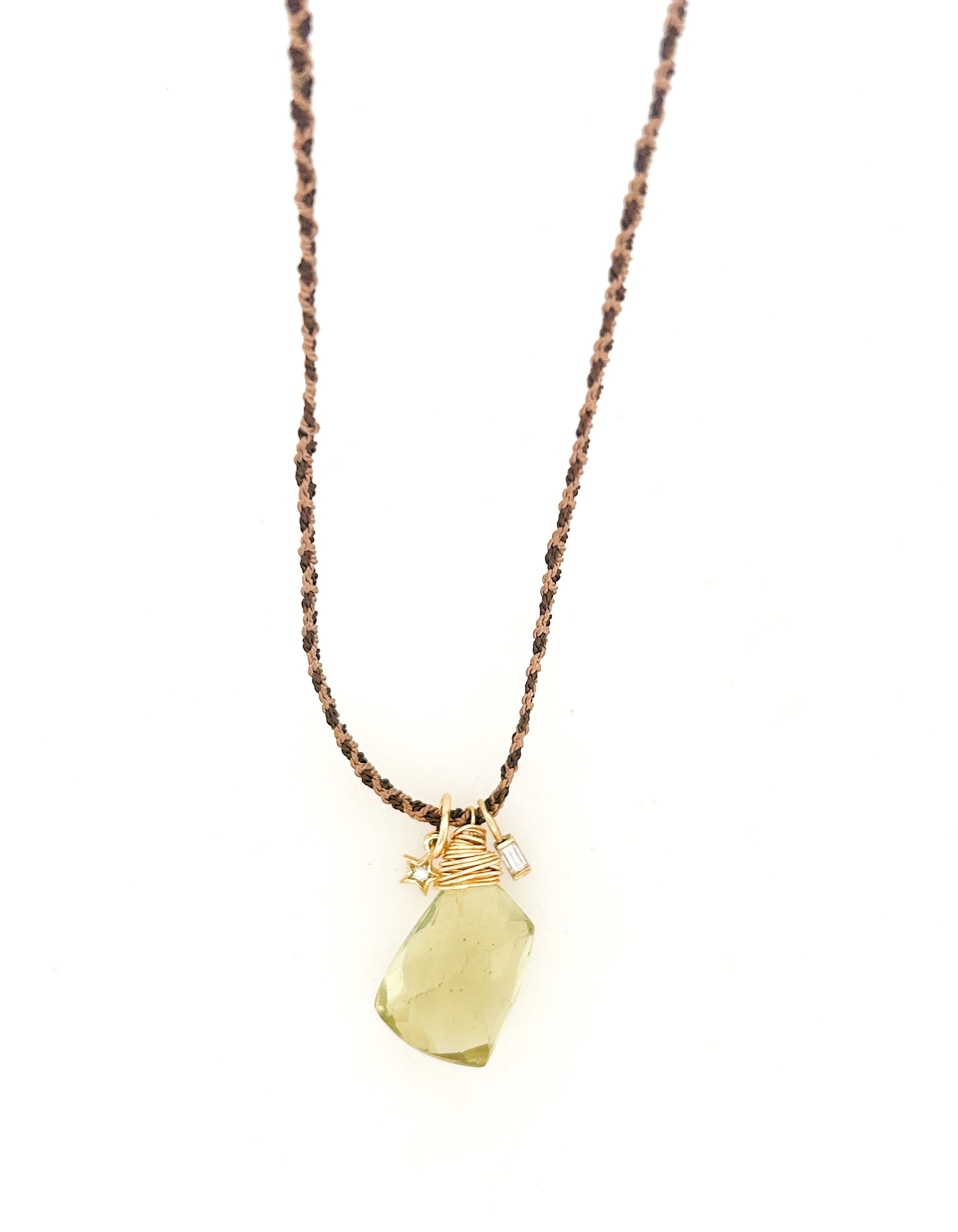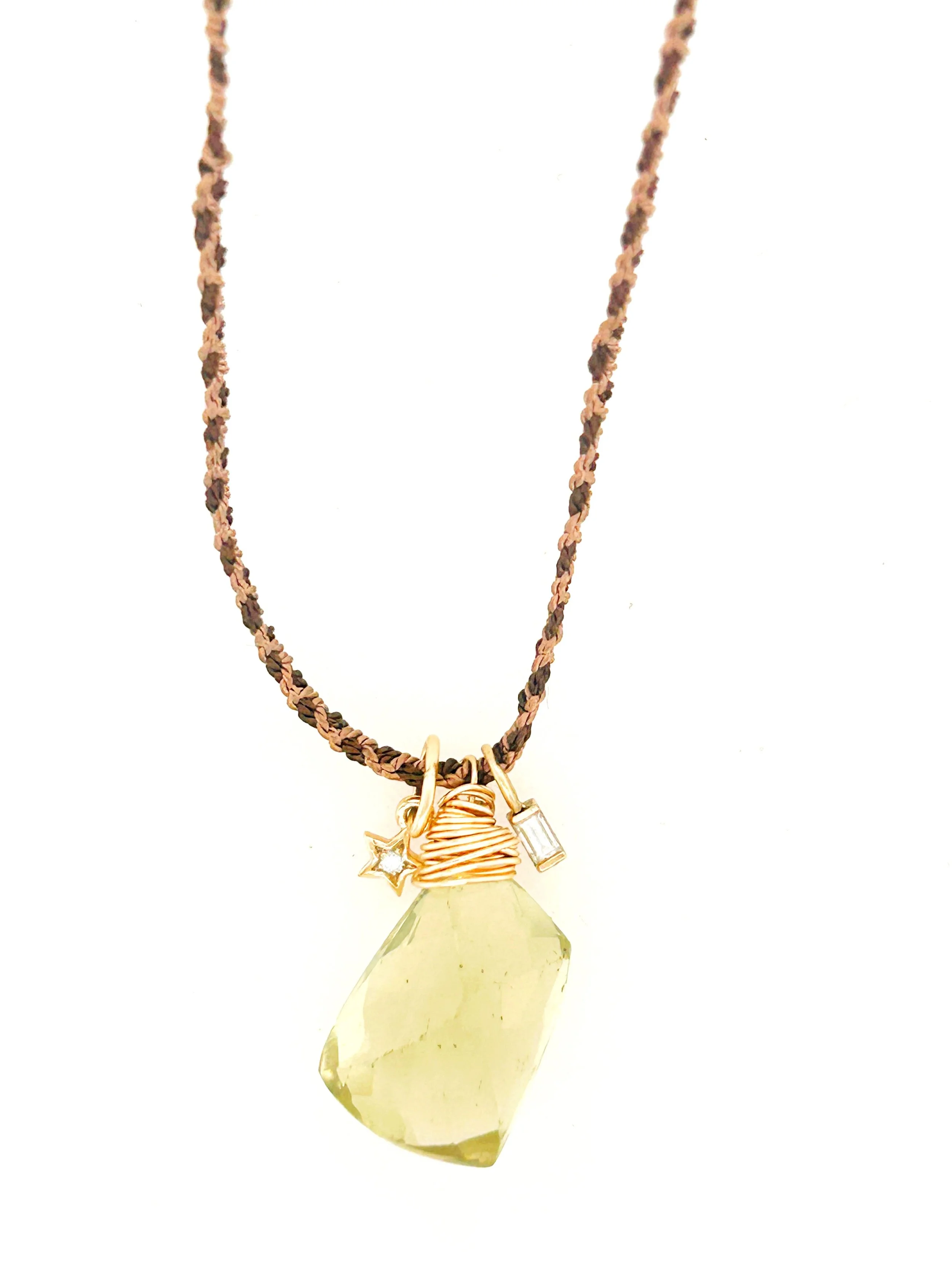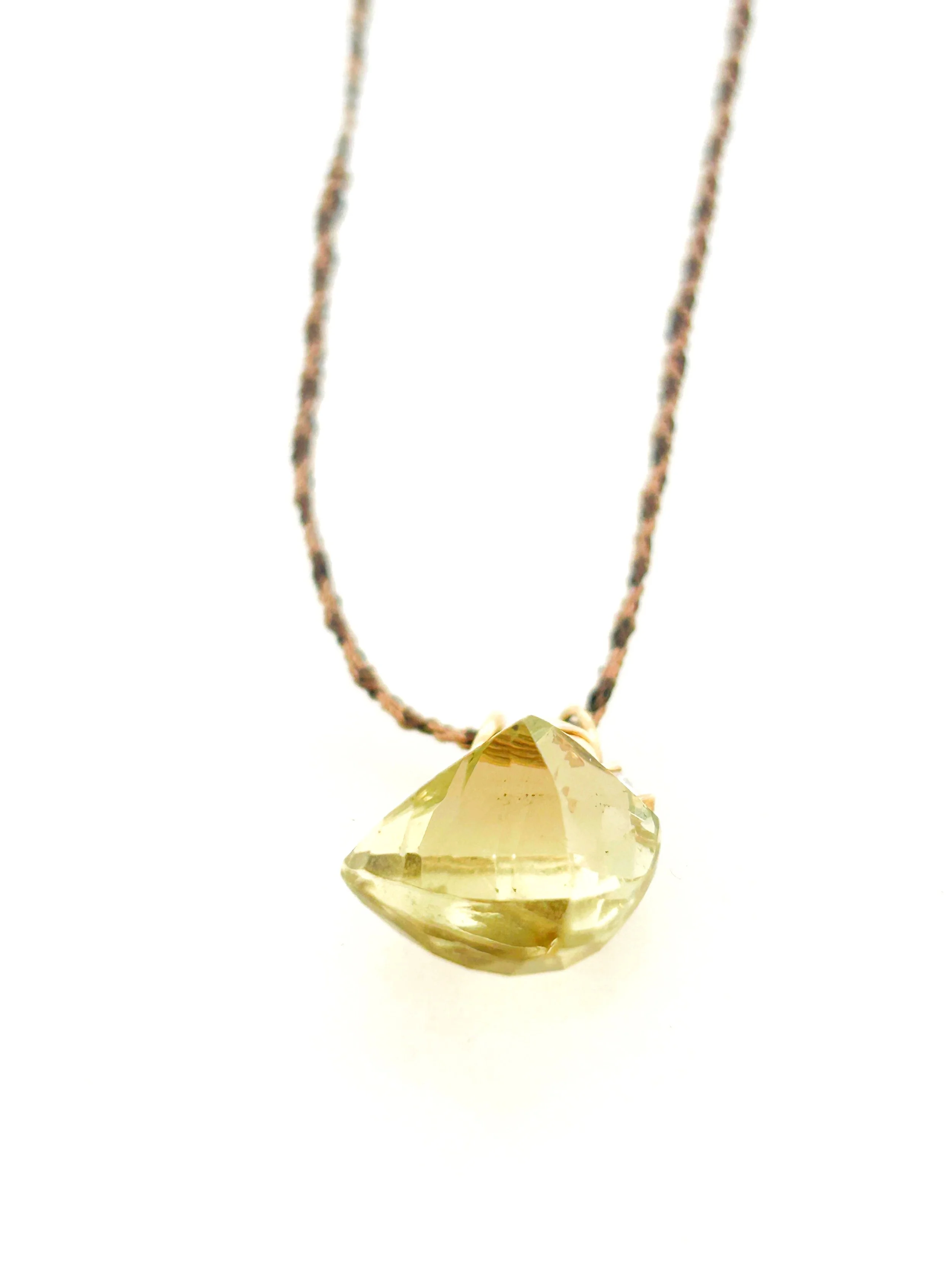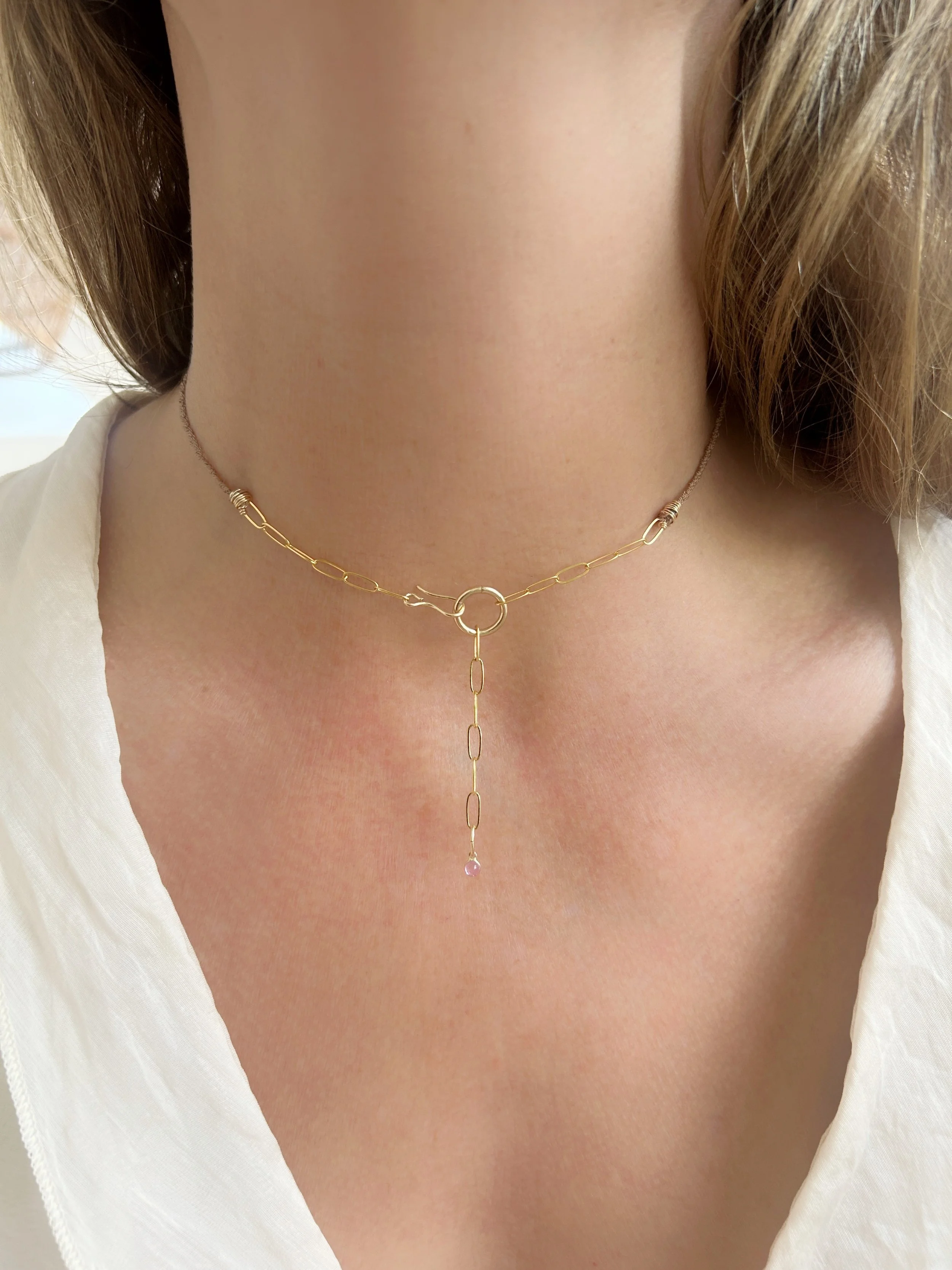 Hand braided silk cord, one of a kind baroque pearl nestled into a hand forged gold filled nest, with a 14k Pink Topaz accent.
